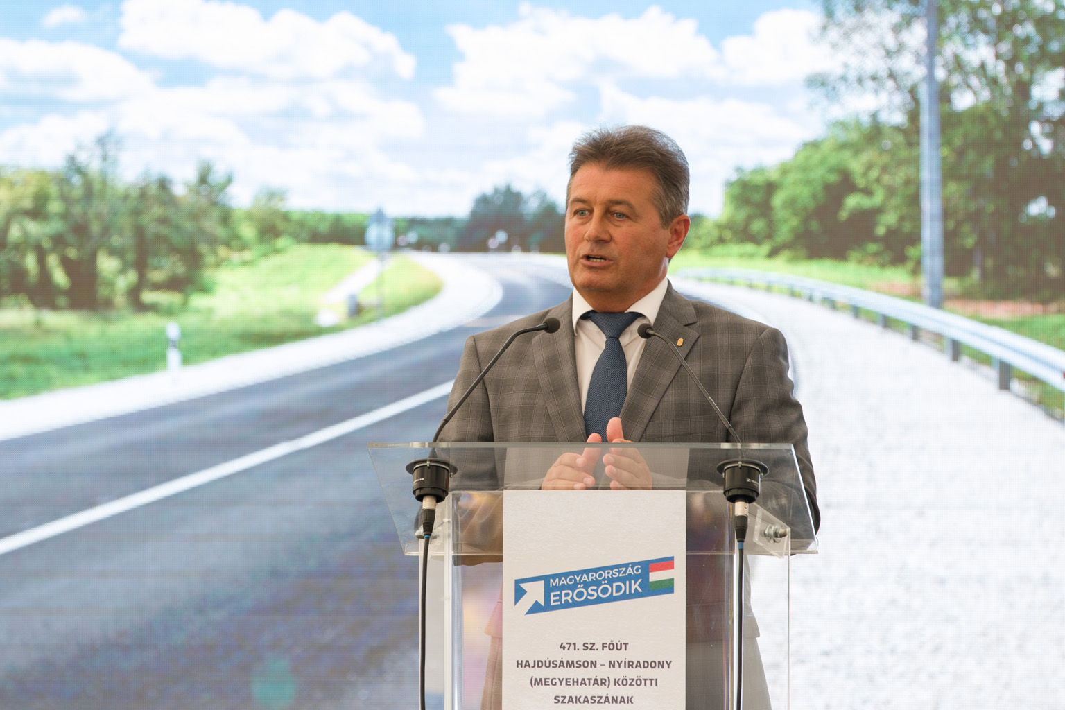- Egy hosszú évekkel ezelőtt megtett választási ígéretet teljesített a Magyar Kormány a 471. számú főút Hajdúsámson-országhatár közötti szakasz átadásával, abban a reményben, hogy ezzel Hajdú-Bihar megye és Nyíradony polgárainak életét javították és biztonságosabbá tették. A kormány célul tűzte ki, hogy Debrecent az ország második fővárosává, az elcsatolt területek fővárosává teszi. Ebben nagy szerepe lesz a 471. számú főút Debrecen-Mátészalka közötti, 72 kilométeres szakasz felújításnak. Az ünnepségen átadott 16,44 kilométer ennek az első jelentős állomása.